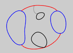Finally, some surveys contain numerous isolated loops, each being a 1-traverse loop system. The above diagram, for example, shows two isolated loops -- one attached to the larger system by a bridge and the other by an articulation point. In the Geometry dialog, Walls lumps these together as if they were a single loop system for display and analysis purposes.